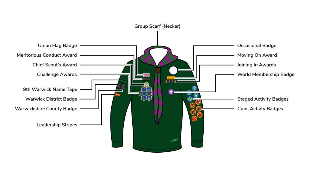 You should only wear Challenge Awards from your current section on your uniform. For example, you wouldn’t wear your Beaver Awards on your Cubs sweater, or your Cubs Awards on your Scouts uniform.