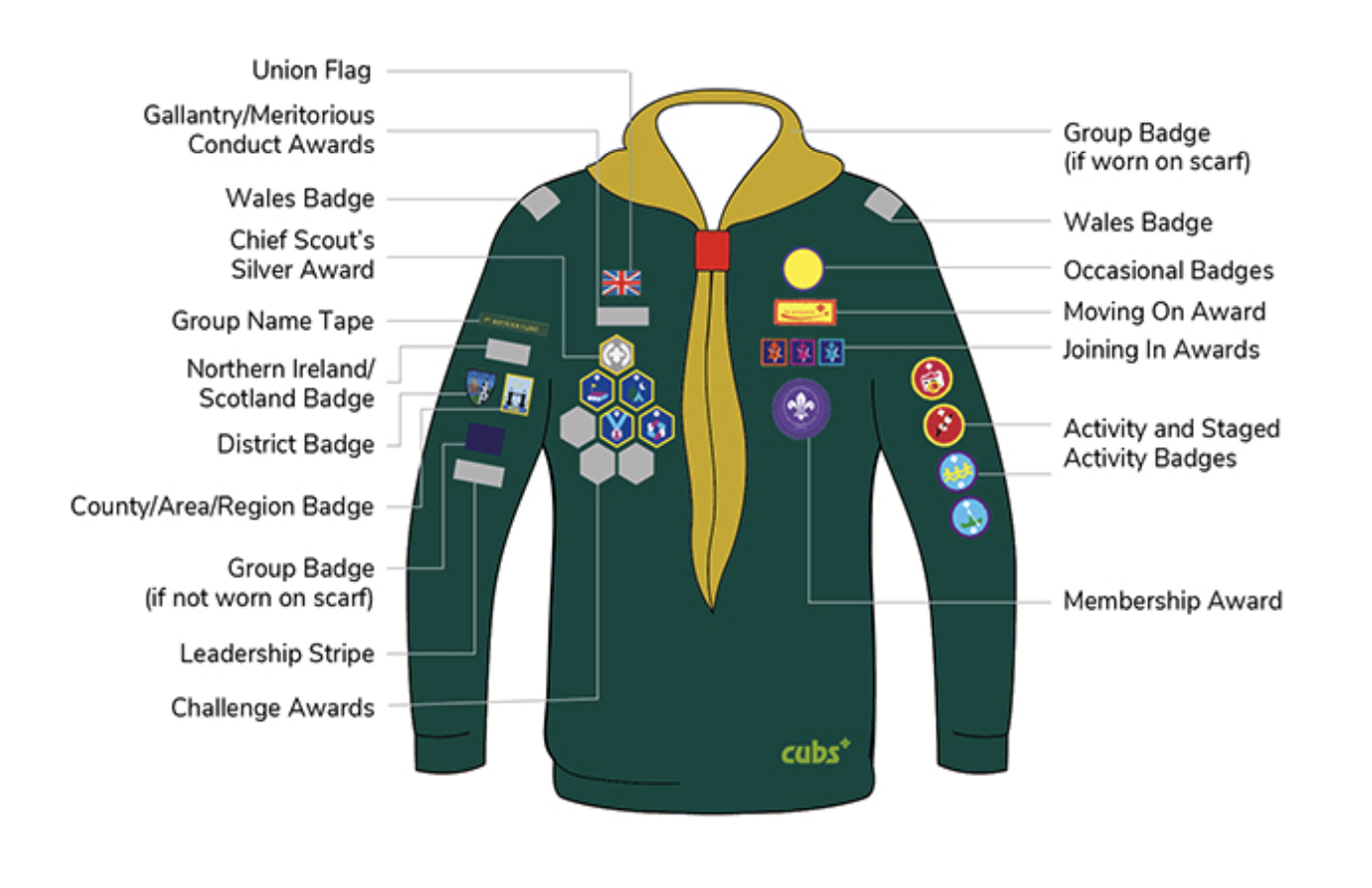 In addition, there are a number of core badges, obtained upon joining or moving on from the Pack, or for time spent in the Scouting movement.